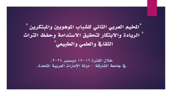دعوة للمشاركة فى "المخيم العربي الثاني للشباب الموهوبين والمبتكرين" " الريادة والابتكار لتحقيق الاستدامة وحفظ التراث الثقافي والعلمي والطبيعي"