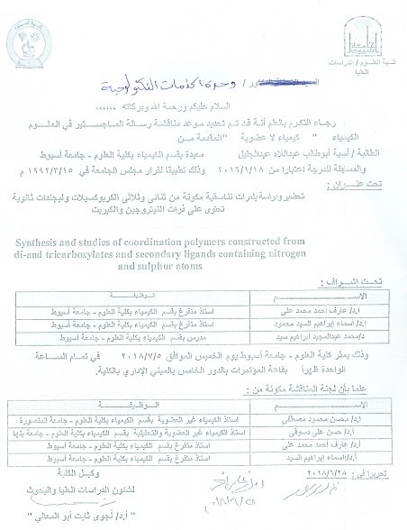 أصدر السيد الأستاذ الدكتور / أحمد عبده جعيص رئيس جامعة أسيوط قراراَ بتعيين السيد الأستاذ الدكتور / عطيفى .عبد الغفار بخيت الأستاذ بقسم الكيمياء بالكلية رئيساَ للقسم وذلك لمدة ثلاث سنوات