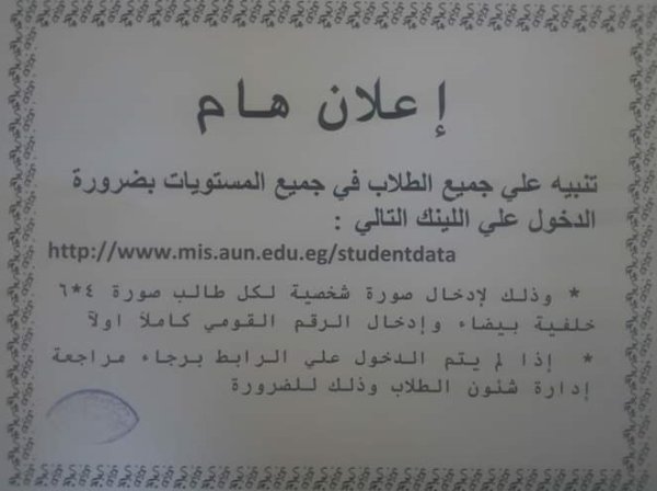هل لديك سؤال ؟ (088) 2345643 - 2412000 sci_dean@aun.edu.eg
