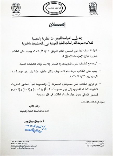 هل لديك سؤال ؟ (088) 2345643 - 2412000 sci_dean@aun.edu.eg