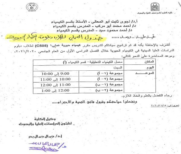 بيان الطلاب المقيدين بدبلومة الكيمياء الحيوية علي الرابط :