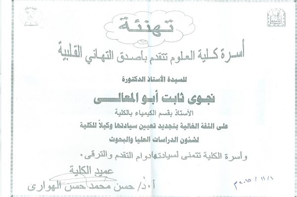 أسرة كلية العلوم تتقدم بأصدق التهاني القلبية