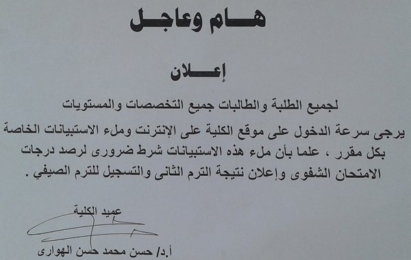 تنبيه هــــــــام وعاجل للطلاب