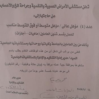 وذلك يوم الخميس الموافق 2017/1/19م في تمام الساعة العاشرة…