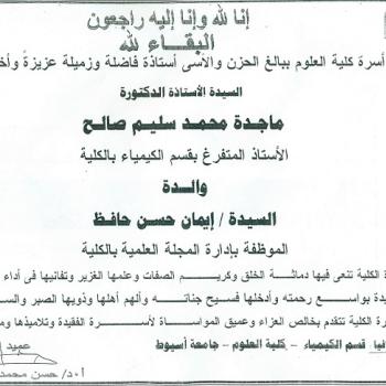 تنعي أسرة كلية العلوم ببالغ الحزن والأسي