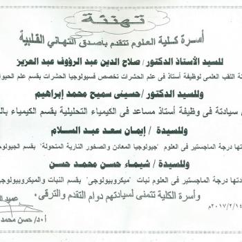 أسرة قسم النبات والميكروبيولوجي تتقدم بأصدق التهاني القلبية