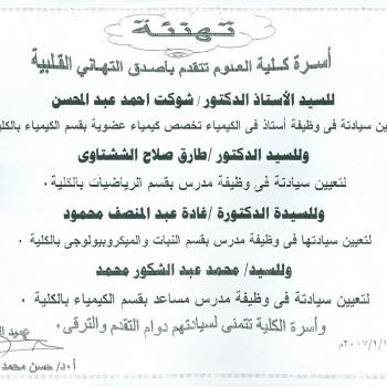 أسرة قسم النبات والميكروبيولوجي تتقدم بأصدق التهاني القلبية