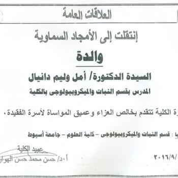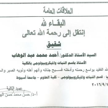 أصدر الدكتور أحمد عبده جعيص رئيس جامعة أسيوط قرارات بتعيين وكلاء جدد بكلية العلوم تشمل تعيين السيد الأستاذ الدكتور/ مدحت مريد صادق شحاته الأستاذ بقسم علم الحيوان وكيلاً للكلية لشئون…