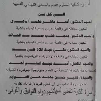 تتقدم أسرة قسم الكيمياء بالتهنئة