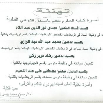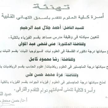 تتقدم أسرة كلية العلوم بخالص التهاني القلبية