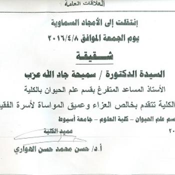 للسيد الأستاذ الدكتور / عصام محمد أحمد زناتي