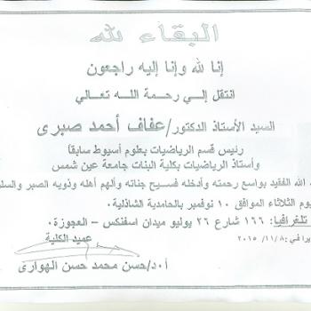 بتقبل العزاء يوم السبت الموافق 2015/11/7م