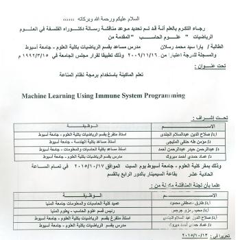 سوف يتم بمشيئة الله تعالي مناقشة رسالة الدكتوراه المقدمة من