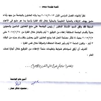 فى إطار تطوير البوابة الالكترونية للجامعة وتحسن ترتيبها فى التقييم الدولى وافق مجلس الجامعة فى جلسته رقم (648) المنعقدة فى 30/11/2014 على الاتى :
