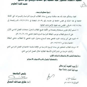 جداول الفصل الدراسي الأول للعام الجامعي 2019/2020