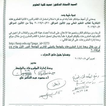 اعلان بخصوص التقدم للدورة الثانية للمشروعات الابتكارية لطلاب التعليم العالي