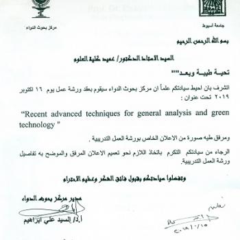 ورشة عمل بعنوان "Recent Advanced Techniques for General Analysis and Green Technology"