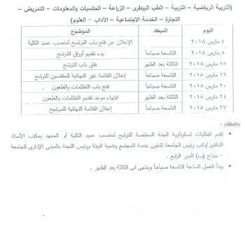 غدا يبدأ بمشيئة الله تعالي التسجيل الالكتروني لجداول طلاب المستوي الثاني والثالث والرابع لطلاب كلية العلوم للفصل الدراسي…