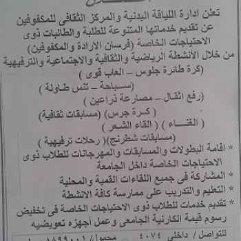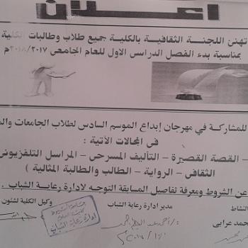 إعلان إلى أبناءنا الطلبة والطالبات من لديهم المهارة في مجال المعلومات العامة والقدرة على تمثيل جامعة أسيوط فى مسابقة…
