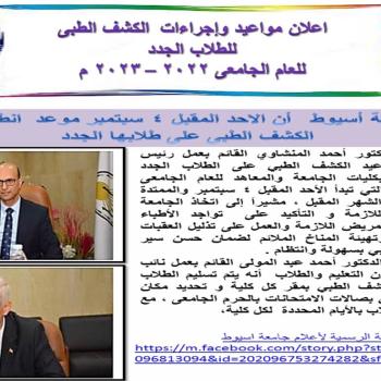 الكشف الطبى للطلاب الجدد للعام الجامعى 2022 - 2023 م