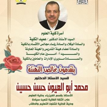 يتوجه الاستاذ الدكتور عبد الحميد ابو سحلي عميد كليه العلوم واسره كليه العلوم جميعا بمزيد من الحزن والأسى بخالص التعازي الي الدكتور / محمد عبد العال عبد الرحمن المدرس بقسم الكيمياء في وفاه والده…