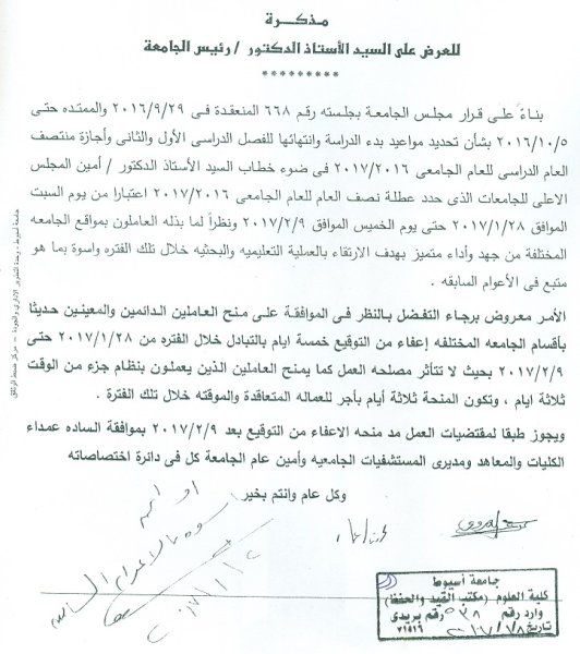 Dates of winter break and the start of the second semester 11 January 2017 Dates of winter break and the start of the second semester