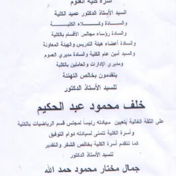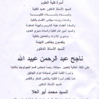 <br>Congratulations to Mr. Prof. Dr./Nageh Abd-elrahman Obaid allah