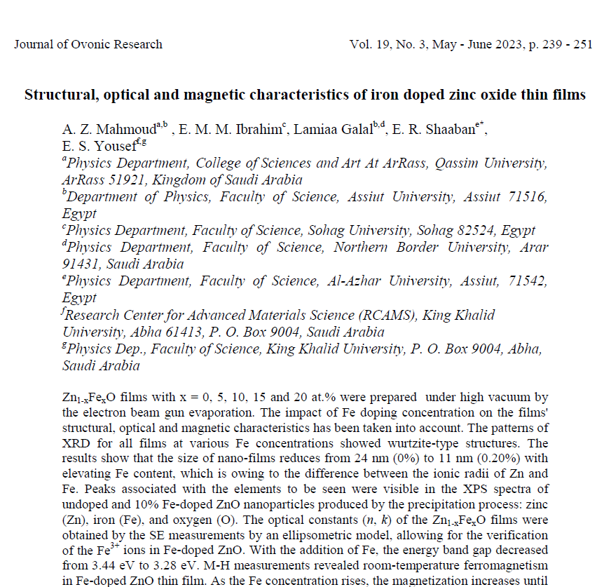 A. Z. Mahmoud , E. M. M. Ibrahim, Lamiaa Galal, E. R. Shaaban,E. S. Yousef