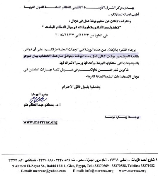 Workshop in the field of "nanotechnology and its applications in the field of radioactive isotopes" 22 September 2014 For more details: http://www.aun.edu.eg/faculty_science/arabic/news.php?id=501533620&screen=0