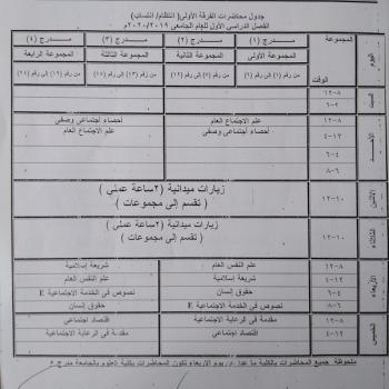 Schedule of the lectures of the first year (regularity / enrollment) the second semester of the academic year 2019/2020