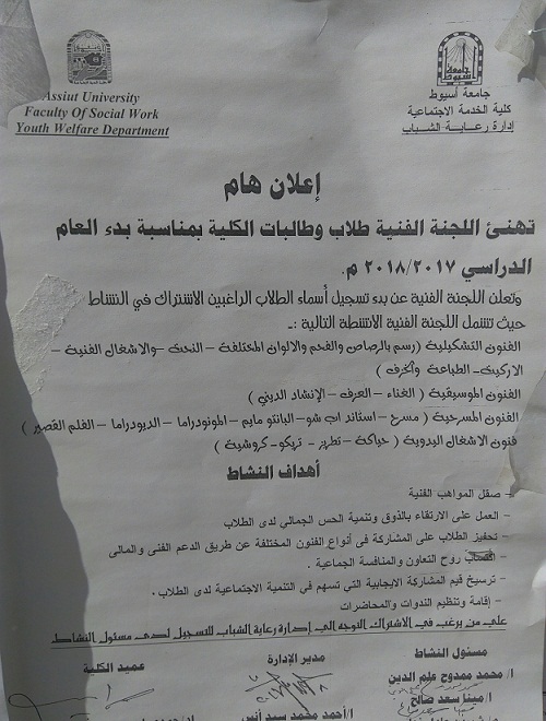 Announcement of the Arts Committee