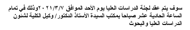 دعوة لمناقشة رسالة الماجستير المقدمة من الباحثة/ اسراء عبد الباسط سعد