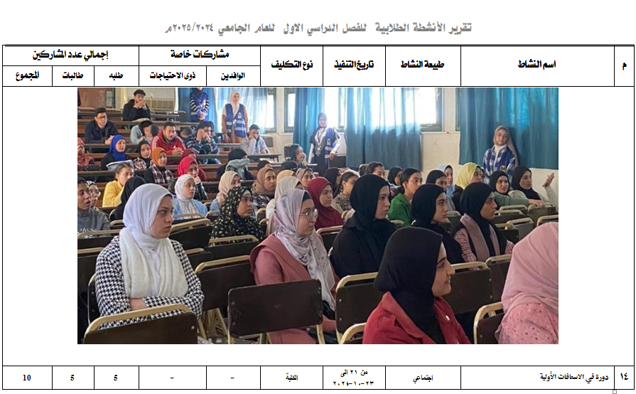 الانشطة الطلابية للفصل الدراسى الاول (دورة في الاسعافات الأولية)