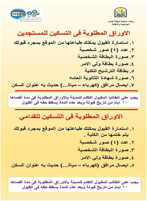 الاوراق المطلوبة فى التسكين للمستجدين