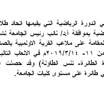 المشاركة في الدورة الرياضية التي يقيمها اتحاد طلاب الجامعة