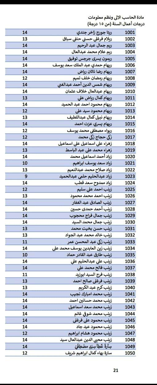 درجات اعمال السنة لمادة الحاسب الالى (صفحة 21،22) 11 مارس 2021 درجات اعمال السنة لمادة الحاسب الالى (صفحة 21،22)