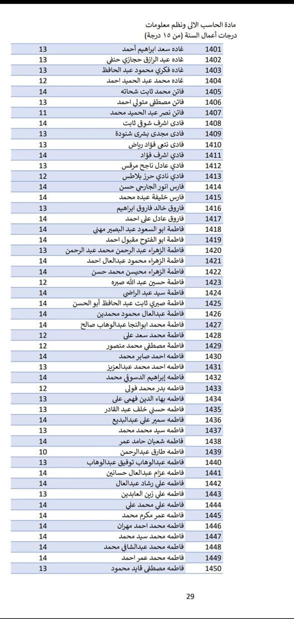 درجات اعمال السنة لمادة الحاسب الالى (صفحة 29،30) 11 مارس 2021 درجات اعمال السنة لمادة الحاسب الالى (صفحة 29،30)