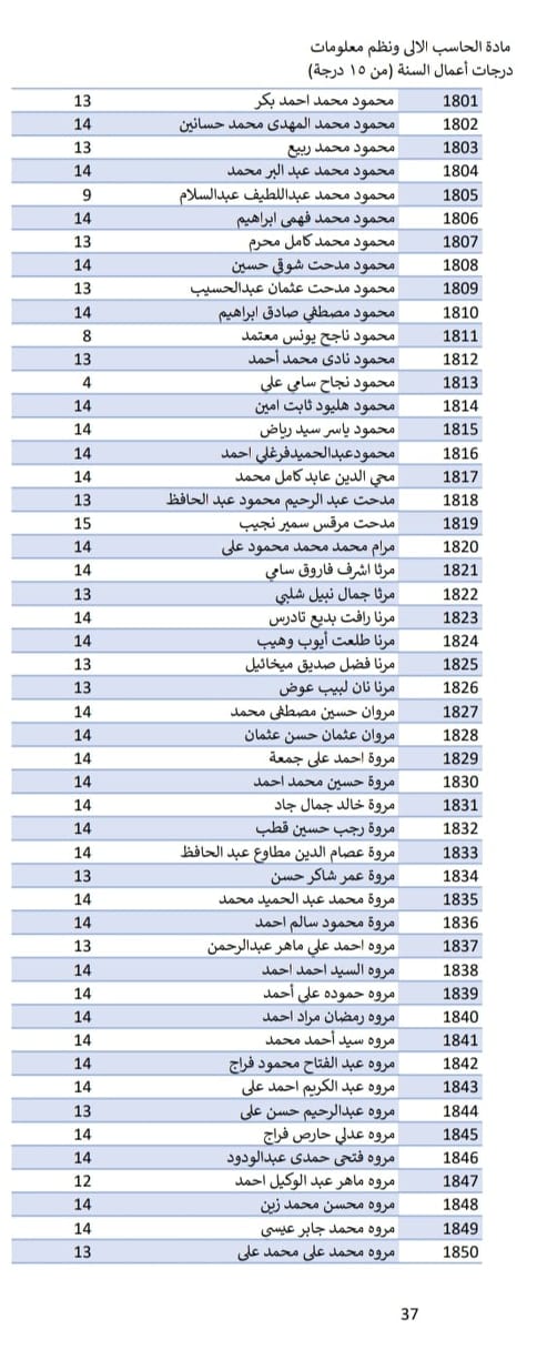 درجات اعمال السنة لمادة الحاسب الالى (صفحة 37،38) 11 مارس 2021 درجات اعمال السنة لمادة الحاسب الالى (صفحة 37،38)