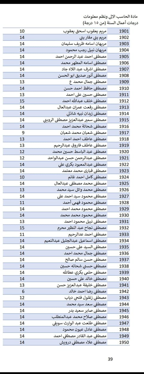 درجات اعمال السنة لمادة الحاسب الالى (صفحة 39،40)