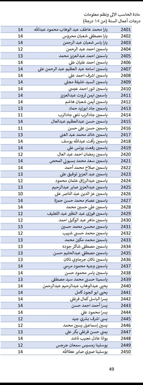 درجات اعمال السنة لمادة الحاسب الالى (صفحة 49،50) 11 مارس 2021 درجات اعمال السنة لمادة الحاسب الالى (صفحة 49،50)