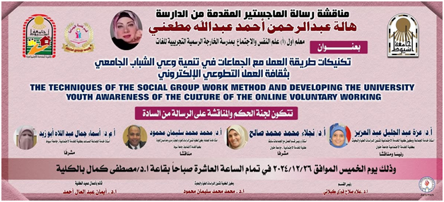 دعوة لمناقشة رسالة الماجستير المقدمة من الباحثة/ اسراء عبد الباسط سعد
