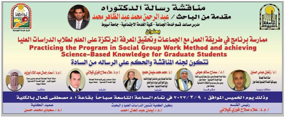 دعوة لمناقشة رسالة الدكتوراة المقدمة من الباحث/ عبد الرحمن محمد عبد الظاهر