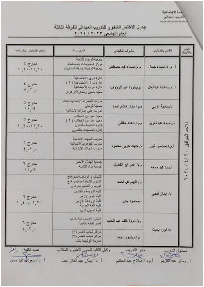 جدول الاختبار الشفوى الفرقة الثالثة للتدريب الميدانى (3)