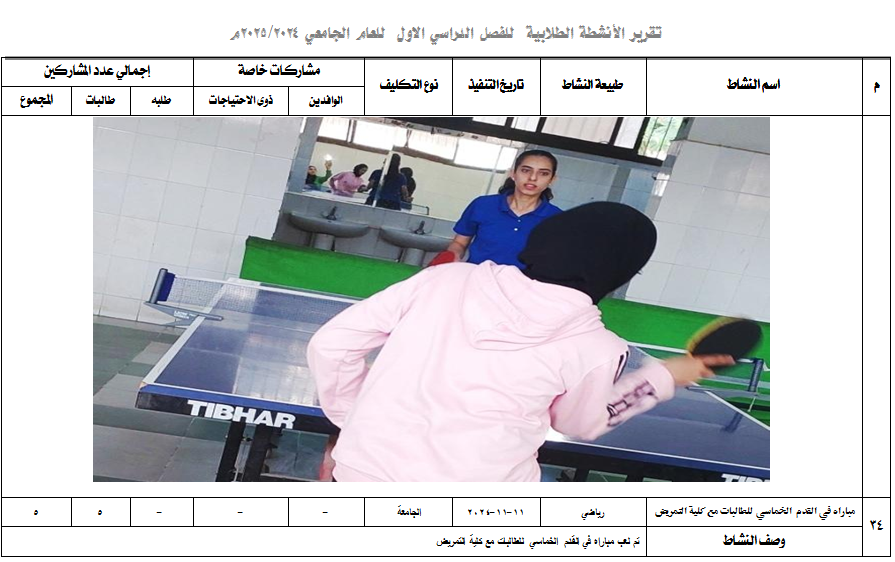 لعب مباراه في القدم الخماسي للطالبات مع كلية التمريض