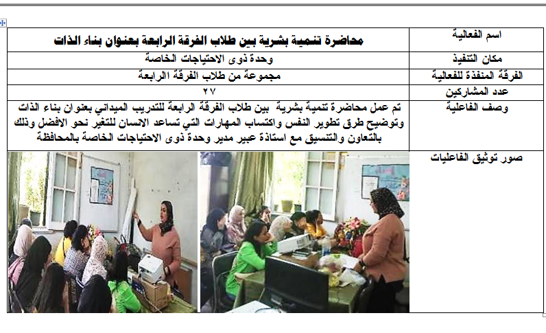 محاضرة تنمية بشرية بين طلاب الفرقة الرابعة بعنوان بناء الذات