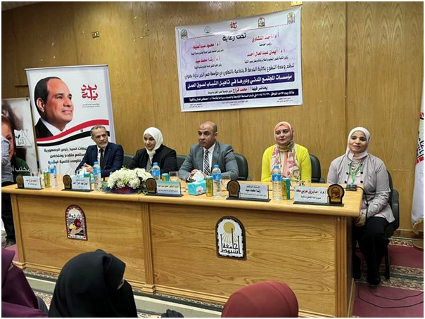 ضمن فعاليات مبادرة السيد رئيس الجمهورية للتنمية البشرية "بداية"، وتحت رعاية السيد الأستاذ الدكتور أحمد المنشاوي، رئيس جامعة أسيوط، عقدت وحدة التطوع بكلية الخدمة الاجتماعية، بالتعاون مع مؤسسة مصر الخير، ندوة كبرى حول دور مؤسسات المجتمع المدني في تأهيل الشباب لسوق العمل، حاضر فيها الأستاذ محمد فراج، مدير مكتب مؤسسة مصر الخير بمحافظة أسيوط، و نظمتها أسرة انطلاقة الطلابية و ذلك في إطار تعاونها الوثيق مع الوحدة.