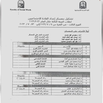 تشكيل معسكر اعداد القادة الاجتماعيين لطلاب الفرقة الثالثة