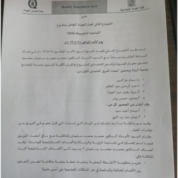تقرير عن الاجتماع الثانى لمعيار الجوده الخاص بمشروع الفاعلية التعليمية