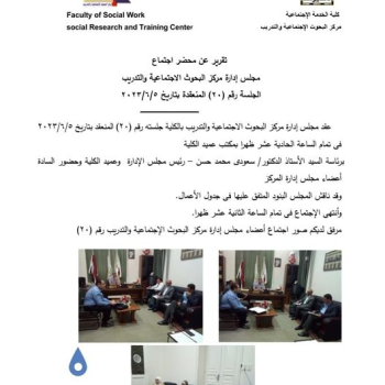 تقرير عن محضر اجتماع مجلس ادارة مركز البحوث الاجتماعية والتدريب
