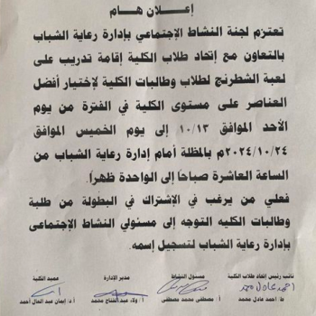 إعلان هام لطلاب كلية الخدمة الاجتماعية - جامعة أسيوط